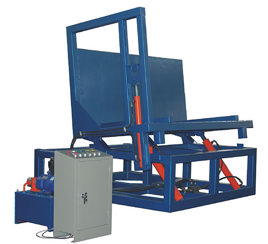 在集裝箱裝卸過程中,本機能將打包后的整垛材料進行90度平穩的翻轉。再用叉車在集裝箱內方便的進出, 從而能使空間得到充分利用,節省運輸成本,減少材料破損,增加勞動安全。其特點是:采用液壓油缸產生動 力,平穩可靠。機體在任意角度(0~90° )翻轉停留,對板坯無損傷,工作效率高,結構、合理,操作 維護簡單、方便。